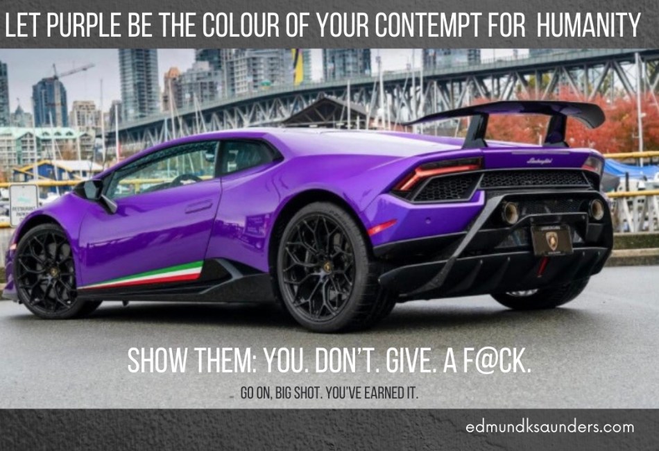 So if you’re rich enough to just go and buy a Lamborghini on a Tuesday afternoon because you feel like it, go fuck yourself. It’s not personal but you know, deep down, nobody, not even you, really deserves to be that rich. Our crumbling societies need that money. Do it for the kids. Forgo the ego-stroking vanities and put some of that wealth back into communities that can’t afford to provide basic services for its citizens. Use it to pay teachers, nurses, and anyone whose job is to serve the community a wage they can live on so they can focus on doing the best job possible without financial worries and actually retire in peace after a career of trying to make our communities better for everyone.